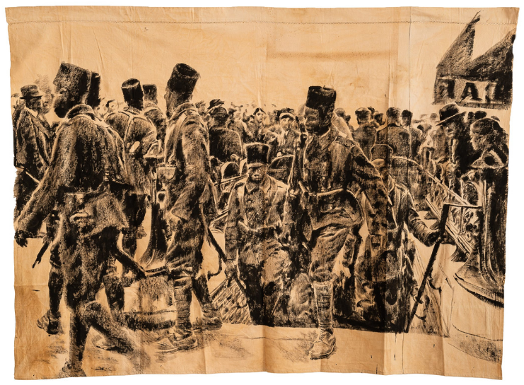 d’Afrique subsaharienne de l’Empire. De gré ou de force, ils furent enrôlés pour combattre dans de nombreuses guerres. 200 000 défendirent la France durant la Première Guerre mondiale. Puis, lorsqu’éclata le second conflit mondial, 179 000 quittèrent leur pays pour combattre l’Allemagne nazie au sein des forces alliées et défendre la liberté en Europe. Ils participèrent à des batailles décisives et périrent par dizaines de milliers à chacune de ces guerres. Mais qui connaît leur existence, leurs faits d’armes ? Leur histoire a le goût amer de l’oubli et du racisme. Différence de traitement, de solde, de pension, les « tirailleurs sénégalais » ont fait l’expérience douloureuse de discriminations de la part de la France. En les représentant et en leur rendant hommage, les artistes nous confrontent à leur mémoire et aux injustices qu’ils ont subies.